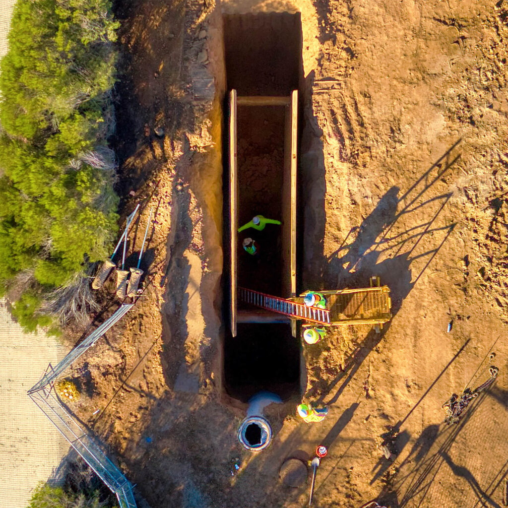 We have invested heavily in technology and have GPS modeling on all our big jobs. This allows for precise management of materials and results in perfect pipe and tank installation. Many of our excavators have GPS systems for exact accuracy. This allows OSHA slope guidelines to be met every time. We double check surveyors’ accuracy which saves time and money on mistakes and busts.